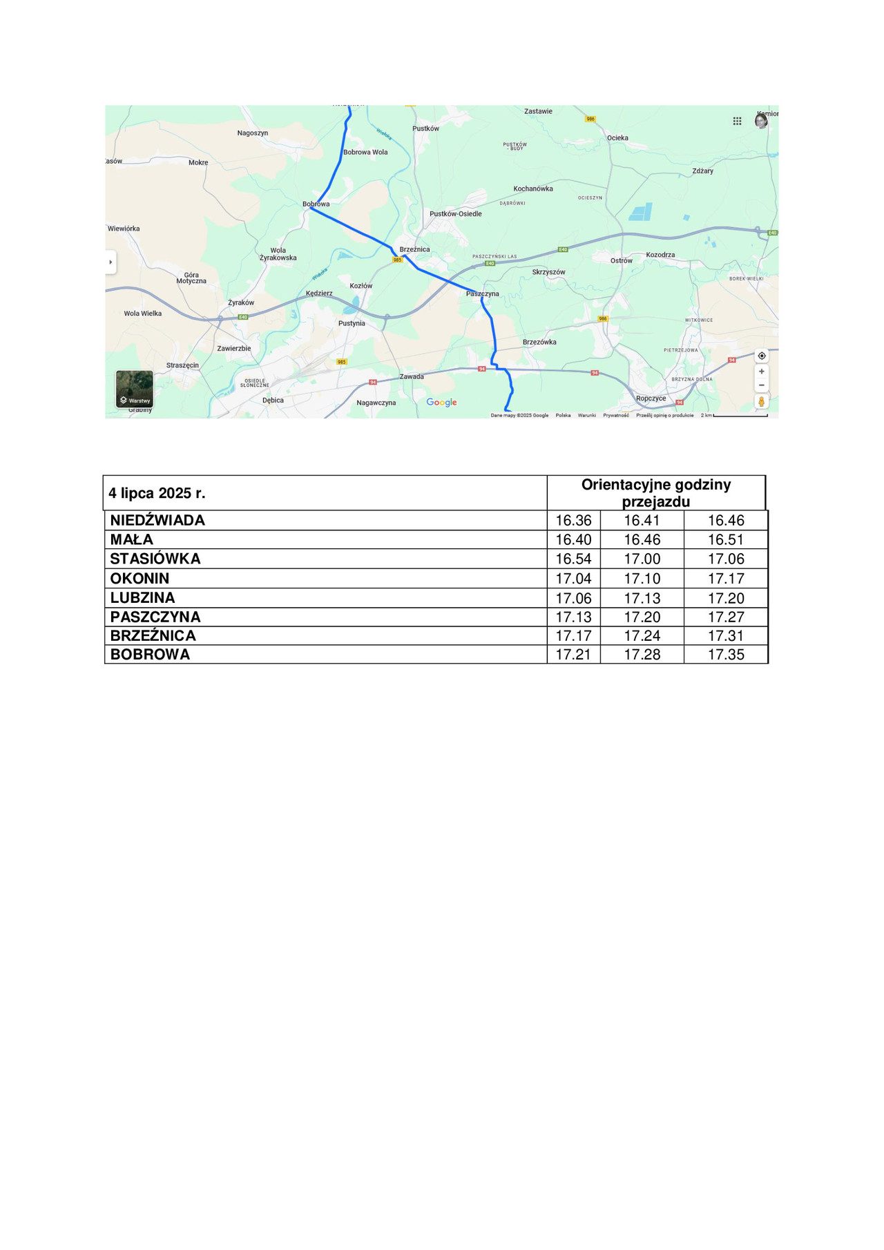 🗺️ Gmina Dębica na trasie wyścigu: