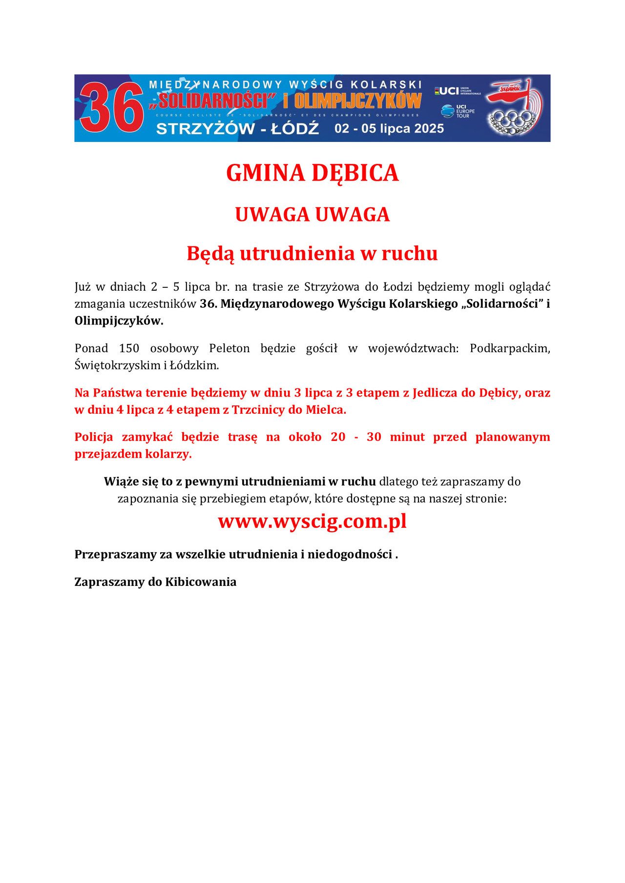 🙏 Przepraszamy za wszelkie utrudnienia i niedogodności związane z organizacją tego prestiżowego wydarzenia sportowego.