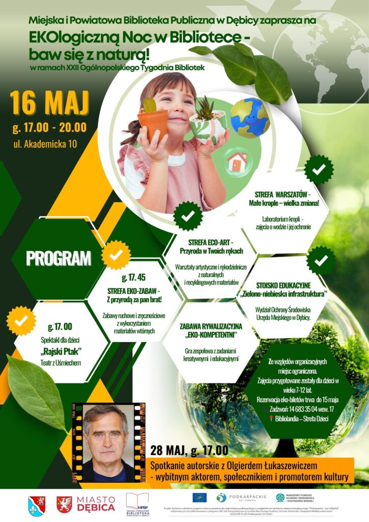 Miejska i Powiatowa Biblioteka Publiczna w Dębicy zaprasza dzieci w wieku 7–12 lat na niezwykłe wydarzenie łączące ekologię, kreatywność i dobrą zabawę. EKOlogiczna Noc w Bibliotece – baw się z naturą! odbędzie się 16 maja 2025 roku w ramach XXII Ogólnopolskiego Tygodnia Bibliotek.