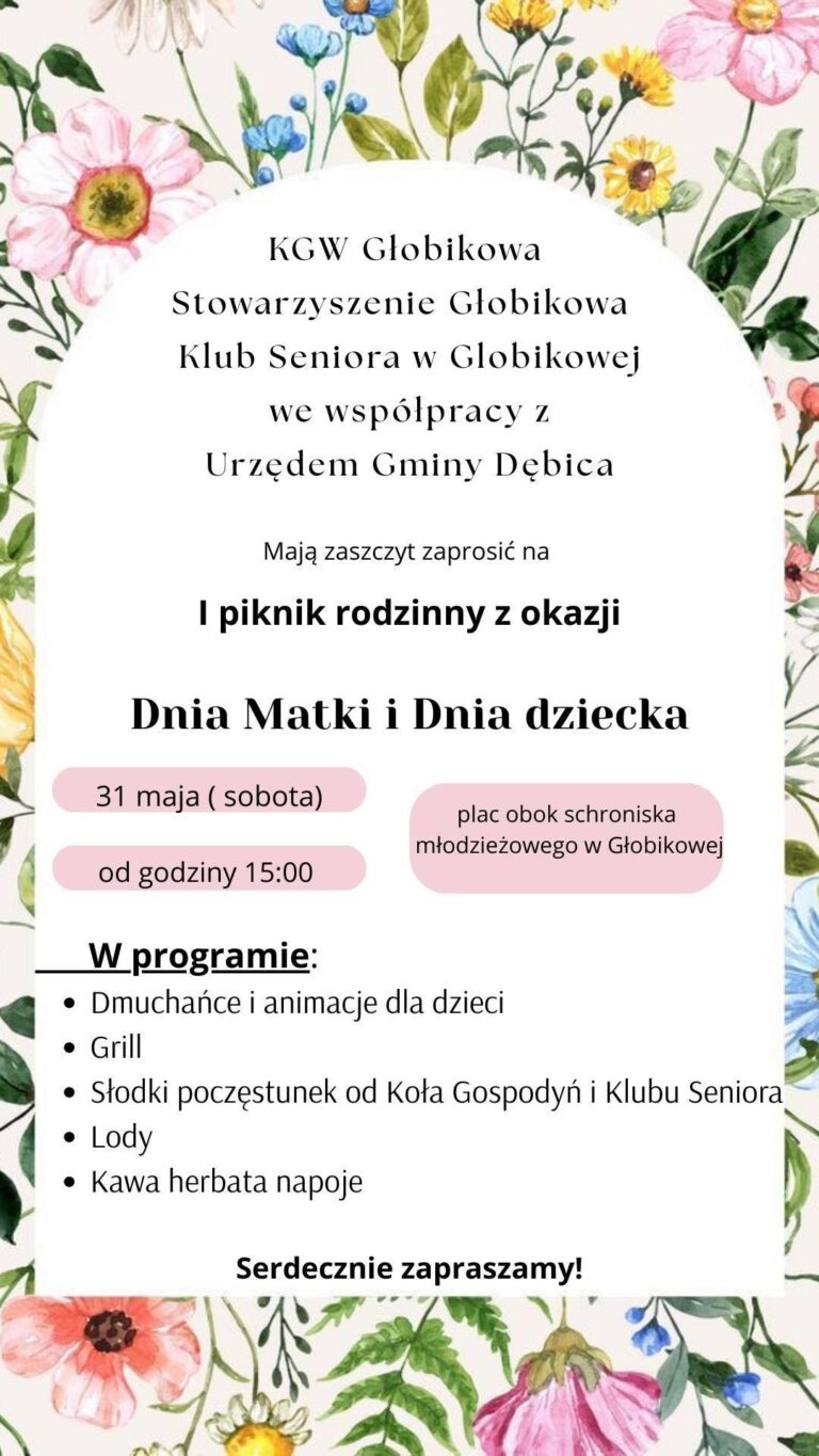 KGW Głobikowa, Stowarzyszenie Głobikowa, Klub Seniora w Głobikowej we współpracy z Urzędem Gminy Dębica zapraszają na