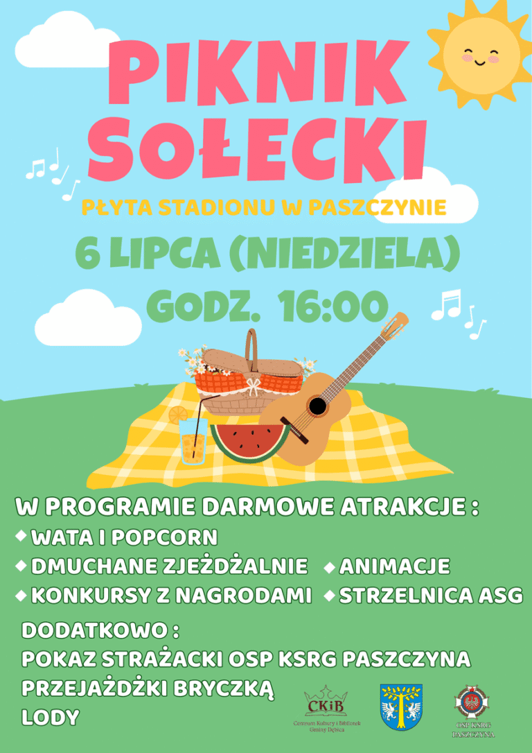Już w najbliższą niedzielę organizatorzy zapraszają Was na Piknik Sołecki w Paszczynie! Zaczynamy o godzinie 16:00.