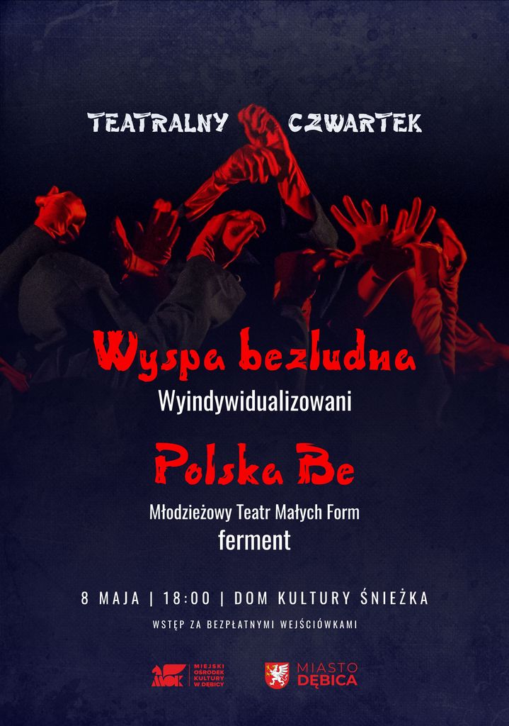 Młodzieżowy Teatr Małych Form „ferment” zaprezentuje autorski spektakl „Polska Be” – przewrotne spojrzenie na narodowe cechy i przywary. Przedstawienie skłania do refleksji nad tym, jak postrzegają nas inni i jak sami chcielibyśmy być widziani. Czy stereotypy determinują nasze zachowania? Czy możemy i chcemy je zmieniać? To krzywe zwierciadło, w którym z przymrużeniem oka zobaczymy portret Polaków – nas samych.